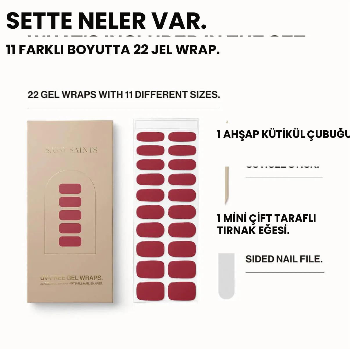 1 adet tahta tırnak eti çubuğu.